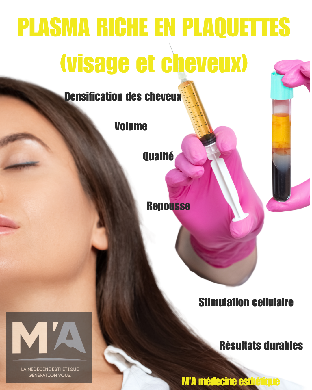 Aussi appelée plasmathérapie, le PRP est une technique d'injection auto régénérative. La centrifugation de votre sang permet de séparer les éléments et de ne récupérer que le plasma riche en plaquettes.